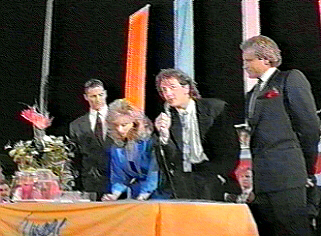 Todd speaks to the crowd about Brett and announces that he has been reinstated. Then he tells everyone that Image Magazine is there to present their "Man of the 80's" and that this person is a dear friend of his. Then he introduces ....