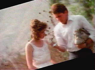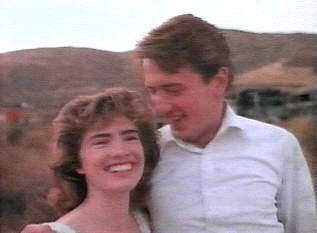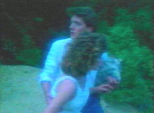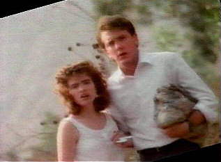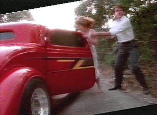 John did this video early in his career...he still has the keychain from it. I'm jealous..he got to ride in the ZZTop car...:-) For those of you who can't place the song.. here's the wav. I took snaps of all of John's screen time....they are in the order they appeared in the video. Basically, the two bad guys try to steal the girls money..she grabs the money, runs out into the night, runs into John (her hero) and with the help of the three girls, the car, and the band...the good guys win....